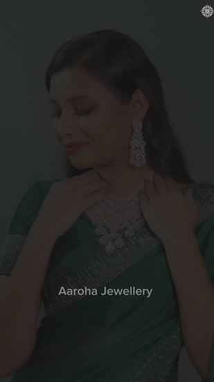 Elevate your elegance with this stunning AD multi-layered necklace set, designed with precision and adorned with shimmering white American diamonds. Crafted from premium silver-plated metal alloy, this elegant piece adds a touch of sophistication to your attire. The intricate multi-layered design enhances both Indian and Western outfits, making it a versatile choice for formal events and evening parties. A must-have for those who appreciate timeless beauty and exquisite craftsmanship.