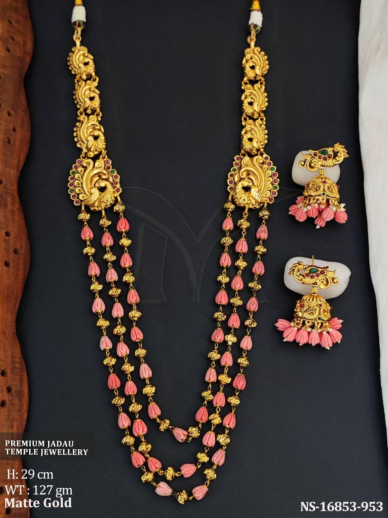Temple Jewellery Matte Gold Polish Jadau Necklace Set
