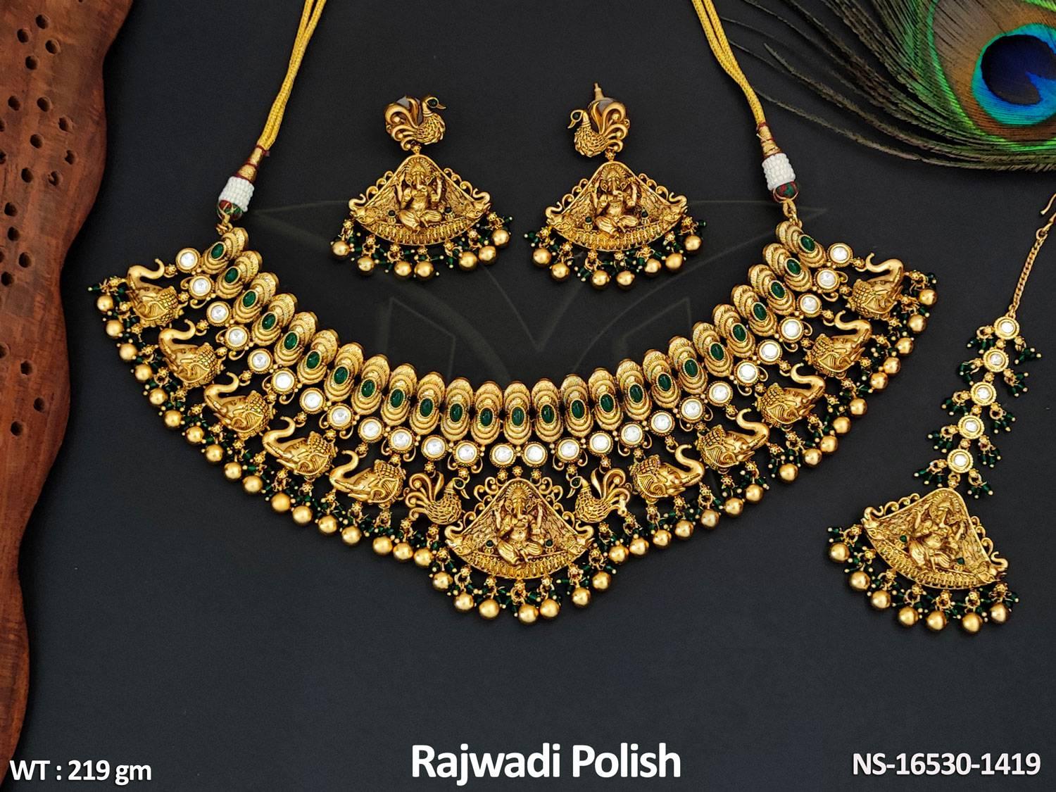 Temple Jewellery Rajwadi Polish Fancy Design Party Wear Necklace Set